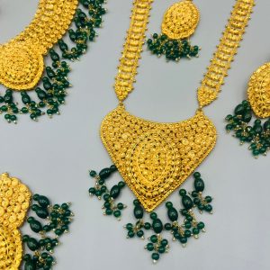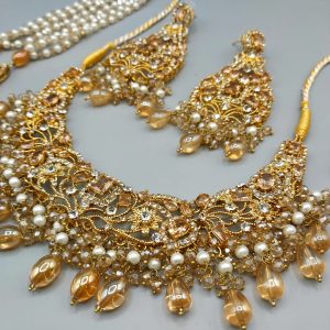 £1200 out of 5Pakistani Bridal Jewelry Set – Complete Wedding Collection 2025 Enhance your bridal look with our stunning Pakistani Bridal Jewelry Set, handcrafted with premium materials and traditional detailing. Designed to suit all wedding occasions — Mehndi, Baraat, or Walima. Set Includes: 1 Choker 1 Necklace 1 Long Mala 1 Jhomer (Passa) 2 Jhumkas with Sahara 1…