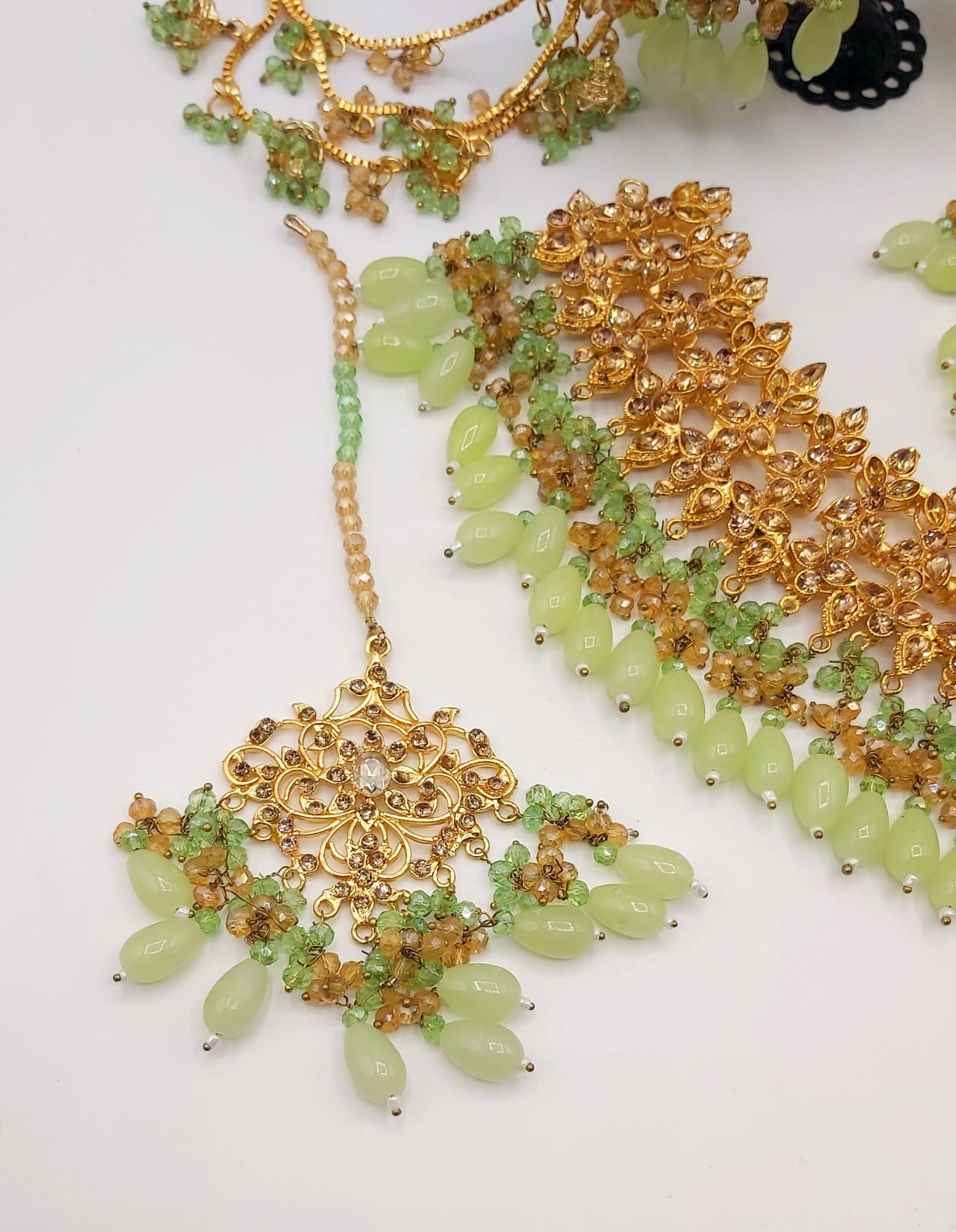 Complete sets include necklaces, earrings, bangles, tikka, jhoomar, and handpieces