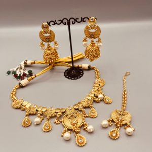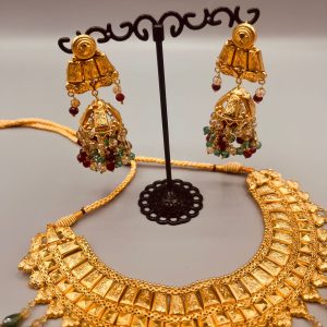 This set is designed to make a statement, with a gracefully detailed necklace, matching earrings, and coordinating accessories that enhance any ensemble. Ideal for weddings, engagements, or special celebrations, it embodies sophistication, heritage, and lasting beauty.