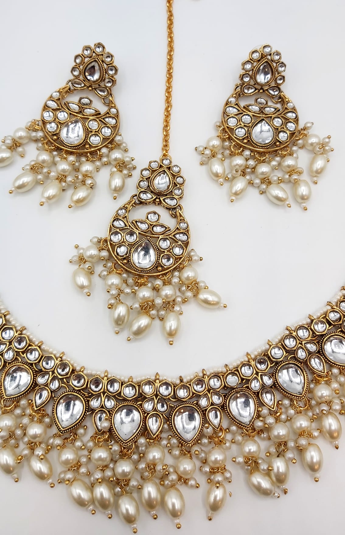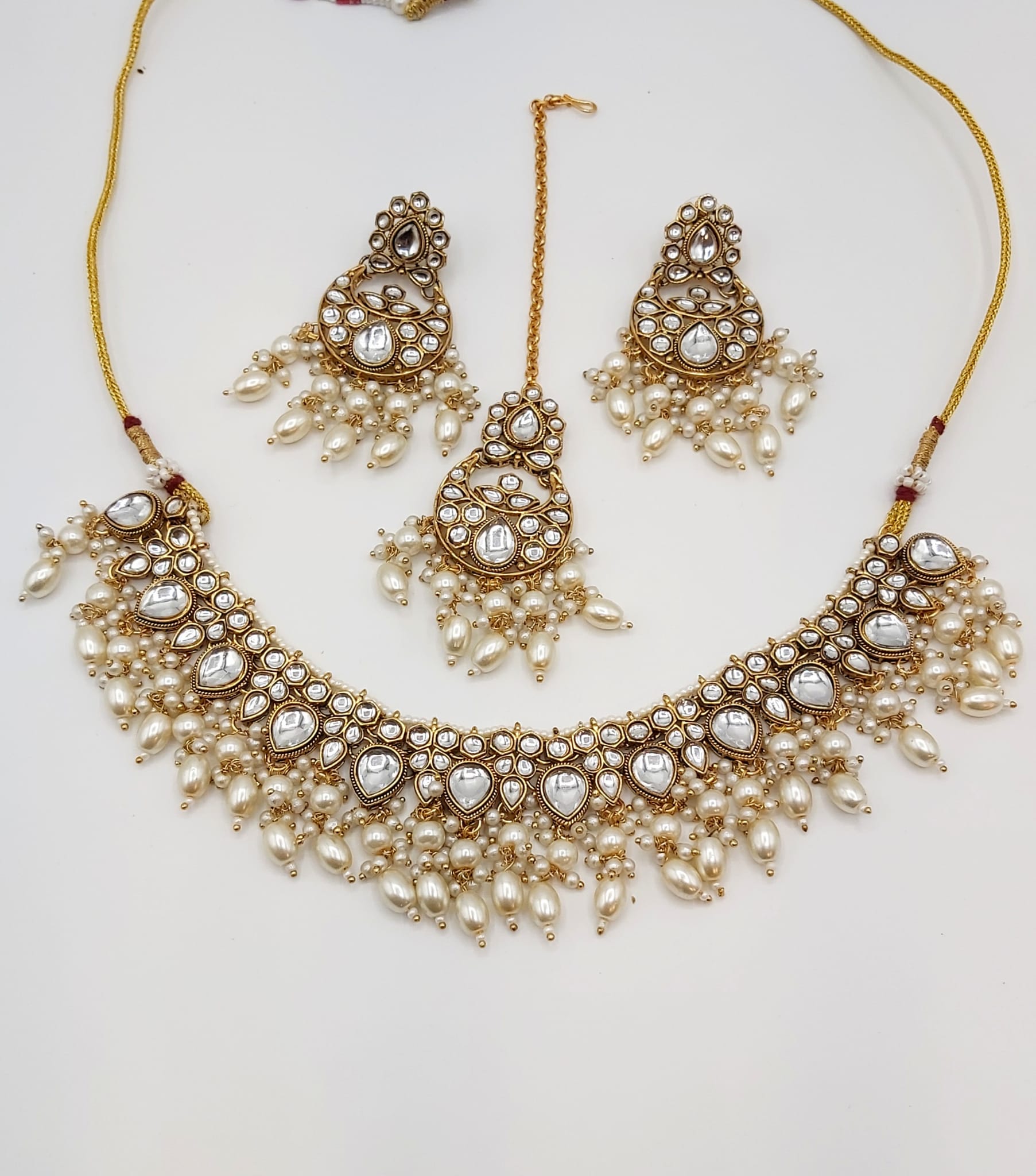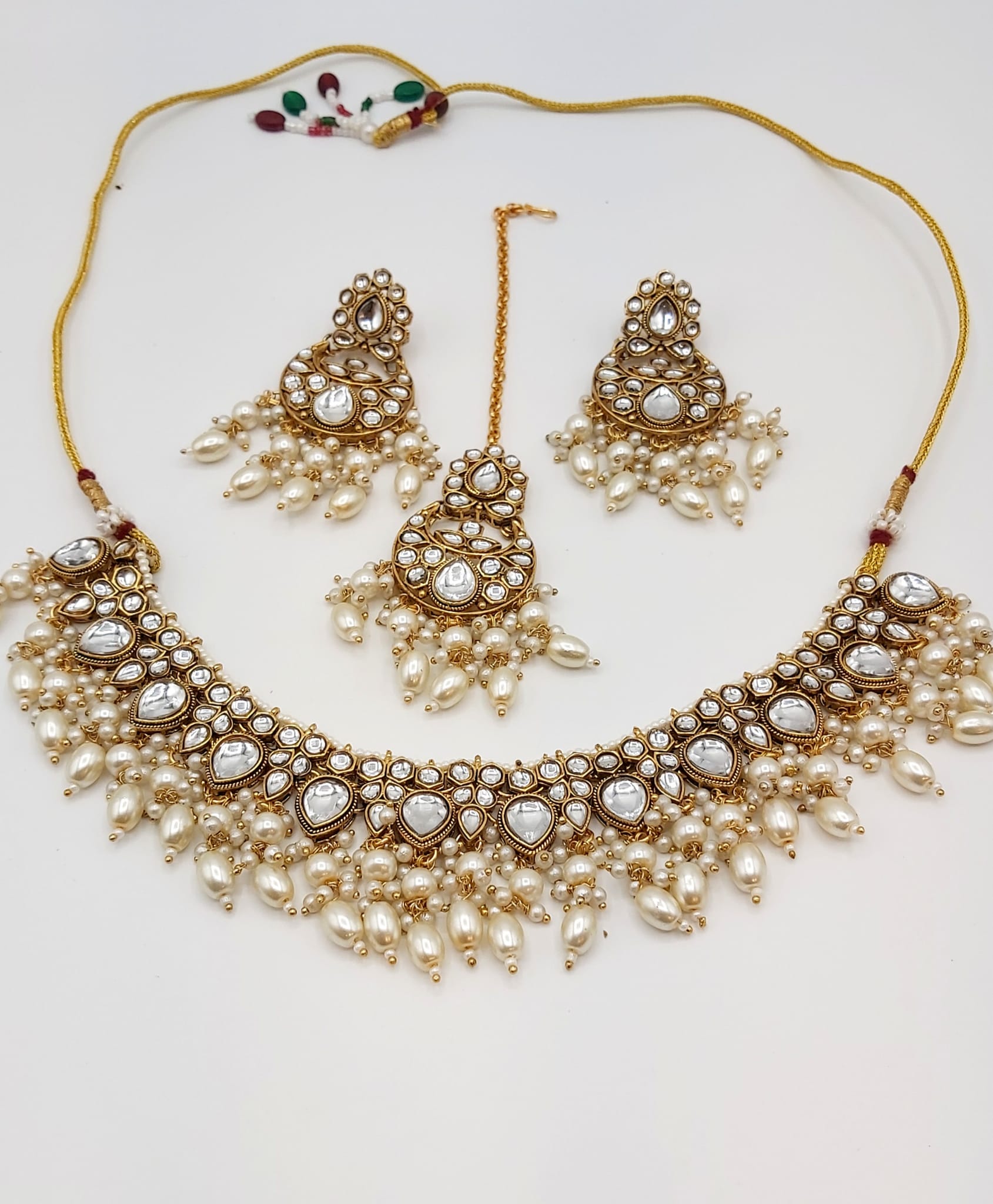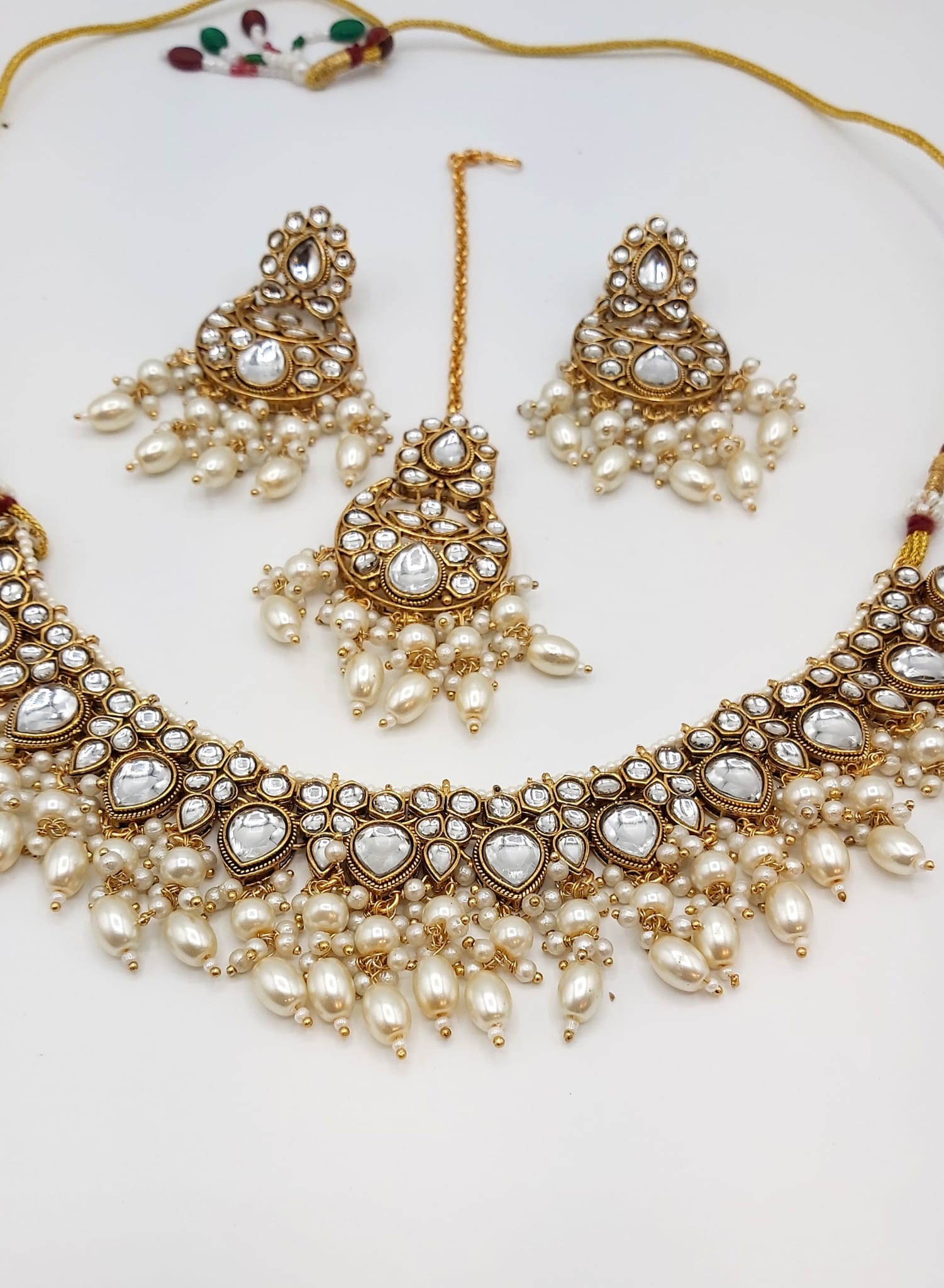 Be the first to review “Handcrafted White & Gold Polki Jewelry Set – Classic Royal Charm”